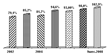 Из таблицы 2.4. видно, что результаты анализа эффективности здравоохранения свидетельствуют о том, что доля расходов ВВП на данную сферу снизилась за 5 лет на 9,1%. С учетом незначительного колебания этого показателя можно утверждать, что он «замер» на отметке 3%.