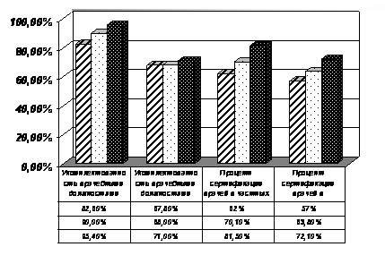 Кроме того, более 3 тыс. врачей, участвующих в программах ДМС, получили лицензии на право заниматься частной врачебной практикой. Только за 2004 г. такие лицензии получили 550 врачей, из которых 27,6% – стоматологи, терапевты – 16,7%, акушеры-гинекологи – 12,4%, педиатры -7,6%, невропатологи – 6% и т.д. В 2005–2007 гг. частными стоматологическими клиниками по программам ДМС было оказано услуг на 213–350 тыс. руб. соответственно. Предоставить качественные медицинские услуги для резко возросшего потока платных больных смогут те лечебные учреждения, которые уже имеют опыт работы в системе ДМС. На рис. 2.8 показана структура сети ЛПУ, предоставляющих медицинские услуги по программам ДМС в различные периоды.