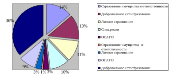 Данный результат был обеспечен существенными сборами премии по имущественному страхованию и добровольному страхованию ответственности. Рассмотрим структуру портфеля страхования (рисунок 10).