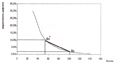 Ниже представлена диаграмма (рис. 2), отражающая результат работы системы кредитного скоринга, из которой видно, что банк может определить свою стратегию управления кредитныи риском таким образом, что все клиенты, имеющие вероятность непогашения кредита более 10%, получают автоматический отказ, клиенты, имеющие вероятность непогашения от 2% до 10% - проходят проверку авторизации, а клиенты, с вероятностью непогашения менее 2% автоматически получают кредит.