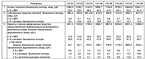 - быстрому и успешному восстановлению банковской сферы после кризиса 1998г;