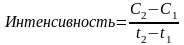 2. Определяем интенсивность уменьшения цен в интервале времени экспозиции от t1 до t2 по формуле: