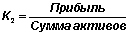 2. Коэффициент прибыльности активов (К2) характеризует объем прибыли, полученный на каждый рубль активов: