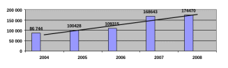 Для возможности реализации поставленной цели дипломной работы следует рассмотреть деятельность выбранного для анализа в качестве объекта исследования – банка ОАО «СКБ-банк». В течение периода с 01.01.04 г. по 01.10.08 г. ОАО «СКБ-банк» динамично развивался и достиг увеличения следующих показателей: