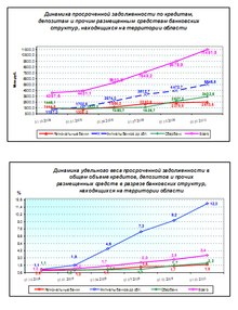 Удельный вес просроченной задолженности в общей сумме кредитов населению увеличился за год на 0,8 процентных пункта и на 1.01.2010 года составил 2,1%, в абсолютном выражении просроченная задолженность возросла на 1,0 млрд. рублей и составила 3,0 млрд. рублей.