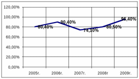 - на 01.01.2009 г. – 96,4%.