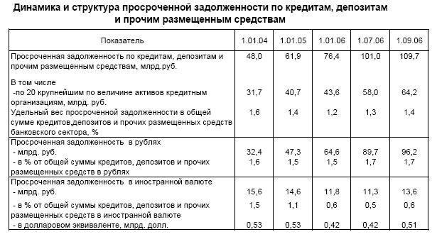 Рост удельного веса просроченной задолженности в 2006 году позволяет сделать вывод, что в настоящее время существует тенденция роста просроченной задолженности, следовательно, возрастает кредитный риск.
