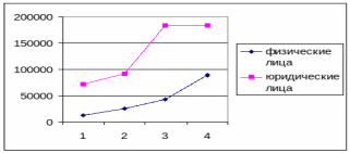 Динамика его изменения в целом и в разрезе физических и юридических лиц наглядно представлена на рис.2.4 и 2.5