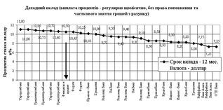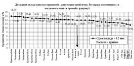 Рис.2.14. – Конкурентне позиціонування пропозицій БАНК “Фінанси@К” в сегменті доходних строкових депозитів фізичних осіб в гривнях (% ставка депозиту)