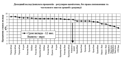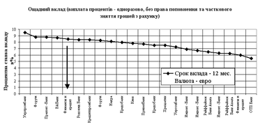 ис.2.12. – Конкурентне позиціонування пропозицій БАНК “Фінанси@К” в сегменті ощадних строкових депозитів фізичних осіб в євро