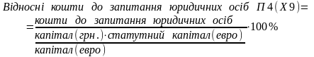 Х9 - Частка низьковартісних залучених коштів до запитання юридосіб, віднесених до поточного рівня статутного капіталу банку, % ;