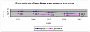 У 2005 році середня процентна ставка за депозитами становила 13.5, у 2006 р. – 9.9, у 2007 р. – 7.4%. Зниження процентних ставок – один із чинників зменшення процентних витрат банку