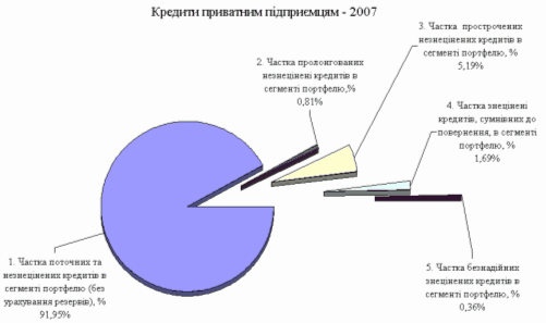 Рис.2.11. Структура знеціненості кредитів, наданих приватним підприємцям в ПАТ КБ "Приватбанк" у 2007 році