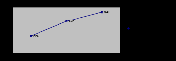 Период погашения дебиторской задолженности предприятия "Е" (табл. 3.5). Поскольку период погашения дебиторской задолженности увеличивается, это означает, что управление кредитами, предоставленными предприятием, ухудшается. Если бы этот период в 2005 г. был такой же, как в 2003 г., то вложения в предприятия-должники составили бы (55/360)х2700=412 (млн. руб.) Это на 127 млн. руб. меньше, чем реальные вложения, и предприятие, в свою очередь, могла уменьшить потребность в заемных средствах на эту сумму только за счет контроля за погашением дебиторской задолженности (Рис. 3.3).