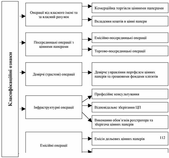 Рисунок 6.1 - Класифікація операцій комерційних банків із цінними паперами