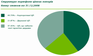 Рис 2.1.1 Структура портфеля цінних паперів «ОТП БАНК» станом на 31.12.2008