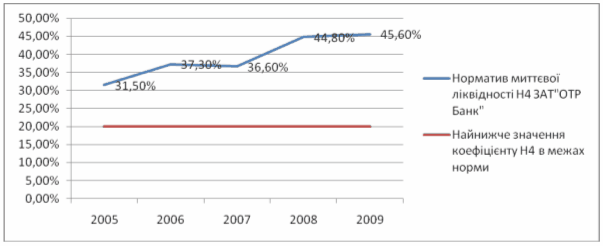Рис.2.3.1. Динаміка нормативу Н4 ЗАТ "ОТР Банк"