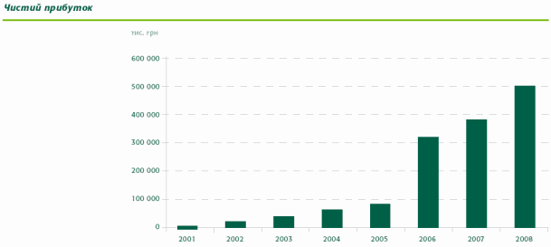 За січень-грудень 2008 року загальний дохід банку досяг 2,4 млрд. грн., що в 2,5 рази вище, ніж за попередній рік. Прибуток від операційної діяльності зріс більш ніж у 3 рази і становив 1,6 млрд. грн. При цьому обсяг сформованих резервів на покриття кредитних ризиків збільшився у 8 разів і перевищив 1,4 млрд. грн. Податок на прибуток, сплачений банком, становив 117,7 млн. грн.