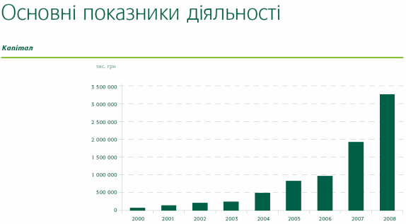 Власний капітал банку з початку 2008 року зріс на 89% і досяг 2,5 млрд. грн. Статутний капітал у звітному періоді було збільшено більш ніж втричі - до 2,1 млрд. грн.