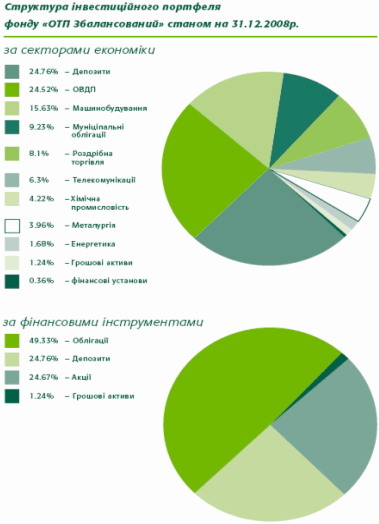 ●● фонд «ОТП Збалансований» пропонує інвесторам зважену інвестиційну стратегію, яка передбачає як інвестування в інструменти з фіксованою дохідністю, так і придбання акцій, складова яких може досягати 40%