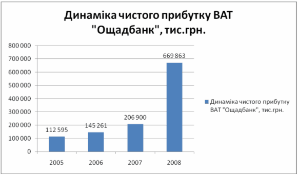 Рис 2.5.3. Динаміка чистого прибутку ВАТ «Ощадбанк», тис.грн.