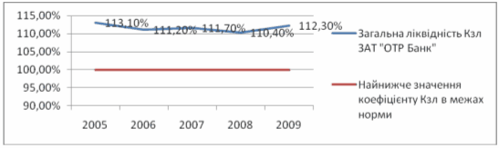 Рис.2.3.4. Динаміка нормативу Кзл ЗАТ "ОТР Банк"
