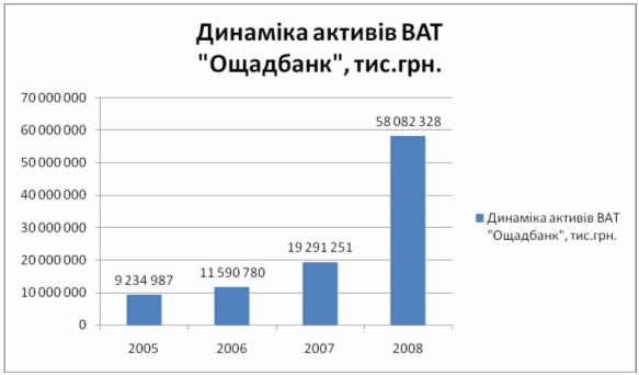 Чисті активи банку за 2008 рік збільшились в 3 рази, або на 38 791 063 тис. грн. і їх обсяг на 31.12.2008 становив 58 081 969 тис. грн. Таке значне нарощення активів у 2008 році відбулось за рахунок збільшення наприкінці року обсягу державних цінних паперів на 11 770 000 тис. грн., якими акціонером банку було поповнено статутний капітал банку, та кредитування підприємства НАК „Нафтогаз” в обсязі 17 925 560 тис. грн.