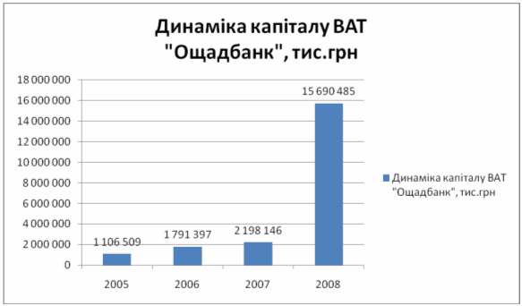 Балансовий капітал за 2008 рік збільшився на 13 492 344 тис. грн., або в 7,1 разу, і становив 15 690 764 тис. грн. Структура власного капіталу змінилась у бік зростання частки статутного капіталу з 48,6%, на початок року, до 90,6% на кінець року. Його збільшення відбулось в основному за рахунок поповнення у 2008 році статутного капіталу банку на 12 970 000 тис.грн. акціонером банку – державою. Таке поповнення капіталу банку значно покращило стан капіталізації банку і позитивно вплинуло на його платоспроможність та стабільність.