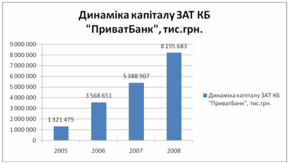 Рис. 2.8.2. Динаміка капіталу ЗАТ КБ «ПриватБанк», тис.грн