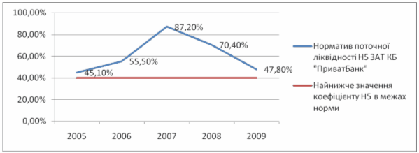 Рис.2.9.2. Динаміка нормативу Н5 ЗАТ КБ "ПриватБанк"