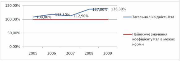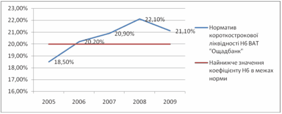 Розраховані для ВАТ «Ощадбанк» показники ліквідності свідчать про відносну стабільність банку, але він має невеликий запас ліквідності, а значить існує ризик виходу коефіцієнтів ліквідності за межі теоретичної норми данного показника.