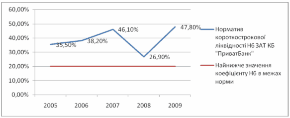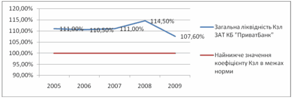 Рис.2.9.4. Динаміка нормативу Кзл ЗАТ КБ "ПриватБанк"