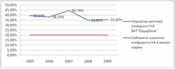 Рис.2.6.1. Динаміка нормативу Н4 ВАТ "Ощадбанк"