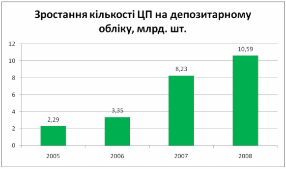 Рис 2.7.3. Зростання кількості ЦП на депозитарному обліку ПриватБанк, млрд.шт.