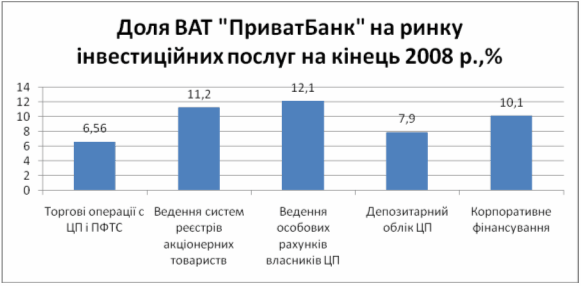 Рис 2.7.1. Доля ВАТ «ПриватБанк» на ринку інвестиційних послуг на кінець 2008 р., %