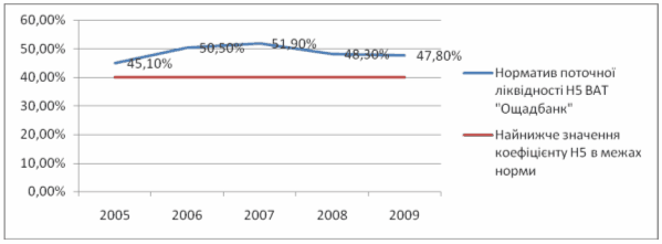 Рис.2.6.2. Динаміка нормативу Н5 ВАТ "Ощадбанк"