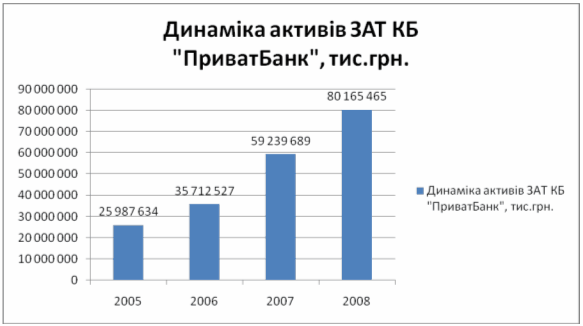 Рис. 2.8.1. Динаміка активів ЗАТ КБ «ПриватБанк», тис.грн.