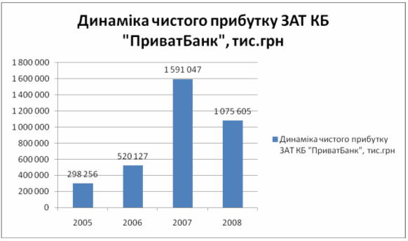 Рис. 2.8.3. Динаміка чистого прибутку ЗАТ КБ «ПриватБанк», тис.грн.