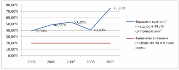 Рис.2.9.1. Динаміка нормативу Н4 ЗАТ КБ "ПриватБанк"