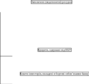 До позиченого капіталу банку належать кошти, отримані від емісії цінних паперів власного боргу, а також кредити, отримані від інших банків, в тому числі і від НБУ. Головними відмінностями від залучених ресурсів є те, що позичені ресурси більш дорогі, як правило, мають більшу суму залучення та ініціатором угоди завжди виступає банк, тоді як при залученні внесків роль банку пасивна. Як вже зазначалося, одним з джерел поповнення ресурсів банку є міжбанківський кредит. Кредитними ресурсами торгують фінансові стійкі банки, в яких завжди є надлишок ресурсів, і для одержання прибутку вони прагнуть розмістити вільні ресурси в інших банках. Крім фінансової вигоди, банки-кредитори одержують можливість встановлення ділових партнерських стосунків. Процентна ставка за міжбанківським кредитами, як правило, нижча, ніж за кредитами, наданими господарникам, і пов’язана з обліковою ставкою НБУ.