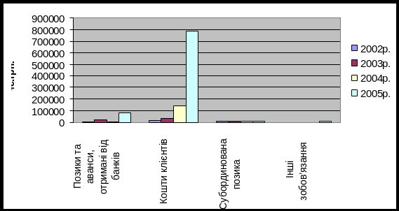 Аналіз зобов’язань АППБ “Аваль” протягом 2002-2005 pp. (тис. грн.)