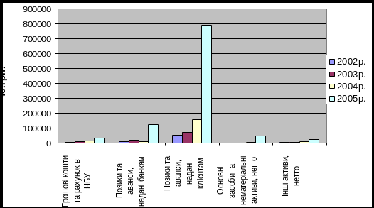 Аналіз активів АППБ “Аваль” в 2002 - 2005 pp. (тис. грн.)