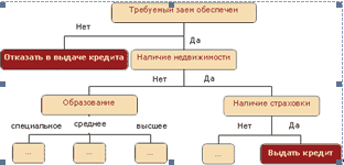 Одним из вариантов решения выше поставленной задачи является применение алгоритмов, решающих задачи классификации. Задача классификации – это задача отнесения какого-либо объекта (потенциальный заемщик) к одному из заранее известных классов (Давать/Не давать кредит). Такого рода задачи с большим успехом решаются одним из методов Data Mining – при помощи деревьев решений. Деревья решений – один из методов автоматического анализа данных. Получаемая модель – это способ представления правил в иерархической, последовательной структуре, где каждому объекту соответствует единственный узел, дающий решение. Пример дерева приведен на рисунке 22