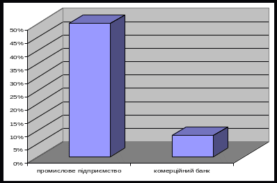 Частка власного капіталу порівняно у банку та на промисловому підприємстві
