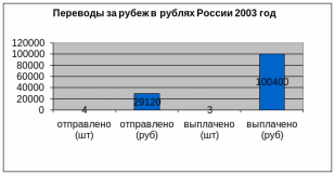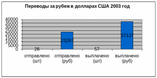 Эта услуга в ОАО Далькомбанк г. Биробиджан появилась только в 2003 году. Количество отправленных переводов было в два раза меньше выплаченных.