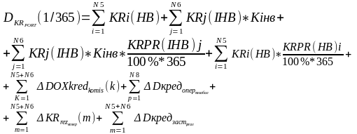 2) Щоденну вартість доходного кредитного портфеля з приведенням коштів в операціях з іноземною валютою до гривневого еквіваленту (по поточному курсу іноземної валюти до національної валюти) можна представити у вигляді наступного рівняння (D_KR_PORT(1/365)):