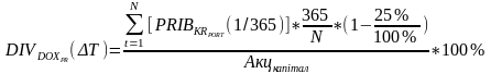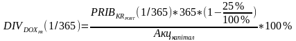 За результатами кожного дня можна прогнозувати норму дивідендної доходності акціонерного капіталу за рахунок прибутковості кредитного портфелю за формулою(з врахуванням податку на прибуток 25%):