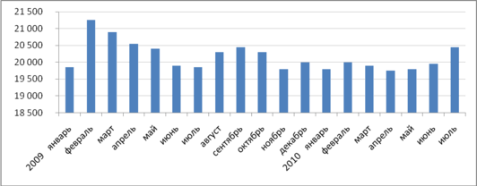 Из приведенного графика видно, что наибольшее снижение ресурсной базы в последнее время произошло по причине погашения кредитов Банку России. Вместе с тем, эти ресурсы были изысканы за счет огромного привлечения средств юридических лиц (451 млрд руб. за 2009 год и первое полугодие 2010 года) и физических лиц (2528,3 млрд руб за тот же период).
