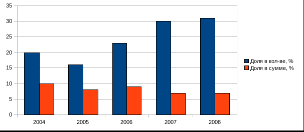 Небанковские кредитные расчетные организации составляют очень небольшую долю в структуре выполненных платежей, их доля в количестве платежей за весь рассмотренный период не превышала одного процента, а сумма не преодолевала отметки в 4% от общей суммы выполненных платежей в частных системах, снизившись в 2007-2008 годах до уровня, не превышающего одного процента. Это обуславливается как развитием банками собственных клиринговых систем, объединяющих в общую систему расчетов различные кредитные организации и непосредственно конкурирующих на платежном рынке со специализированными клиринговыми системами, так и переориентацией этих организаций на рынки услуг, предполагающих больший комиссионный доход, нежели получаемый от обычных межбанковских услуг обеспечения расчетов, таких услуг, как обслуживание систем срочных денежных переводов физических лиц, платежей через электронные системы за услуги связи, за коммунальные услуги и прочие, ориентированные на использование физическими лицами, как ближайшими конечными потребителями.