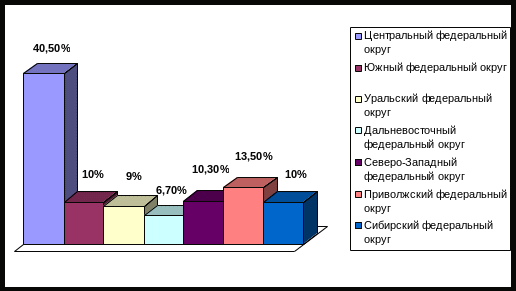 Рис. 7 – Распределение держателей банковских карточек по федеральным округам0